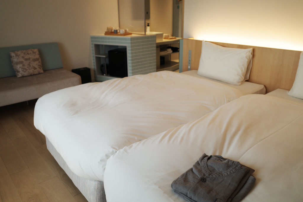 寝具にもこだわっているそうで、ふっくらもちもちの布団とマットレスは最高の心地良さ。